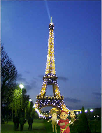 Whoops, here's another shot from the Paris trip. While on a laid back cruise of the River Seine the elves got a little too close to the edge of the boat. Sacre bleu! |