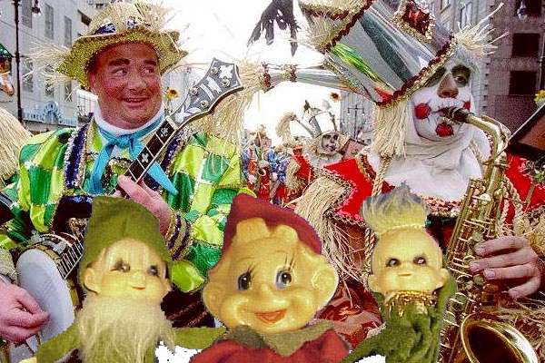 | Here's a shot from the first trip they took to Philly. They were just in time to make it to the annual Mummer's Parade. They look like they fit right in. Go Elves, Go! | ![]() |